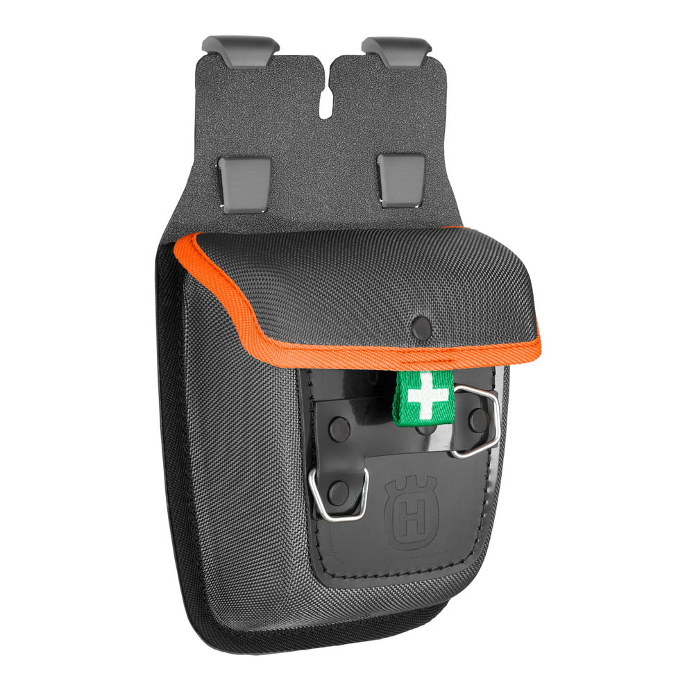 Bakstycke med plats för saker som första förband, GPS-spårare, mellanmål och andra småsaker.