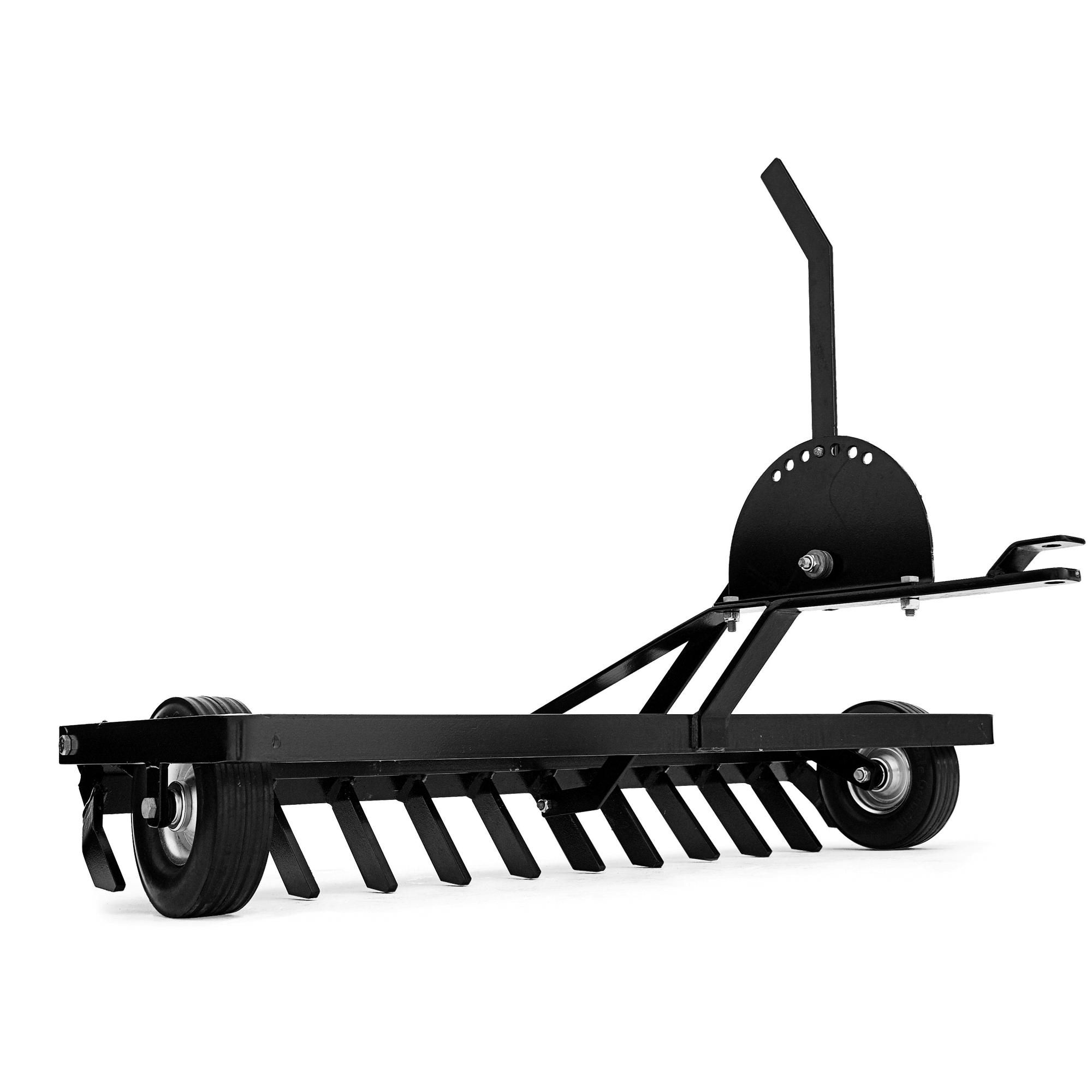 Robust grusharv med gummihjul med möjlighet att välja arbetsdjup.
