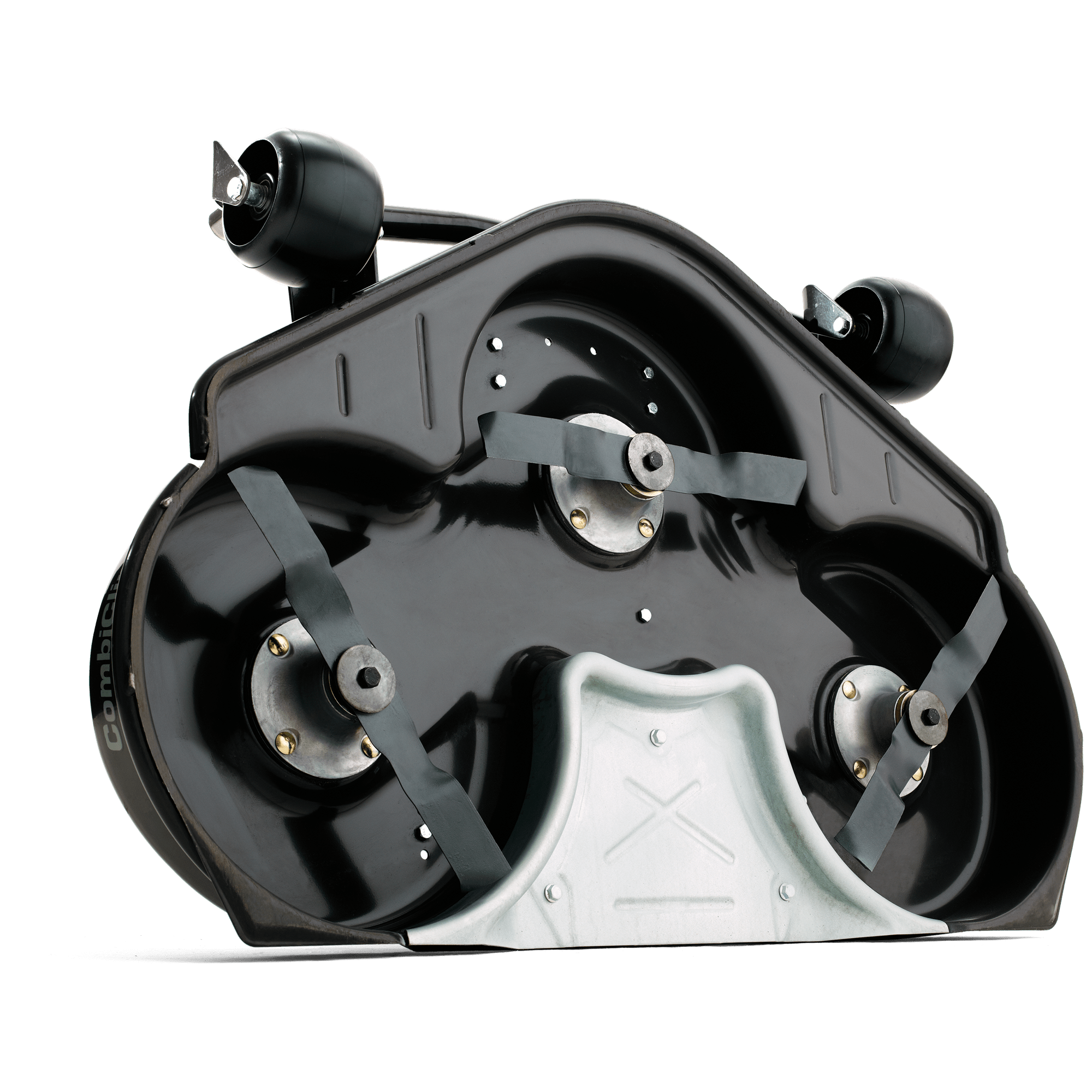 Högpresterande 122 cm kombiaggregat. En innovativ teknisk lösning från Husqvarna som ger ett kombinationsaggregat med mulching och bakutkast i ett och samma aggregat. Kraftig aggregatkonstruktion pressat i ett stålplåtstycke.