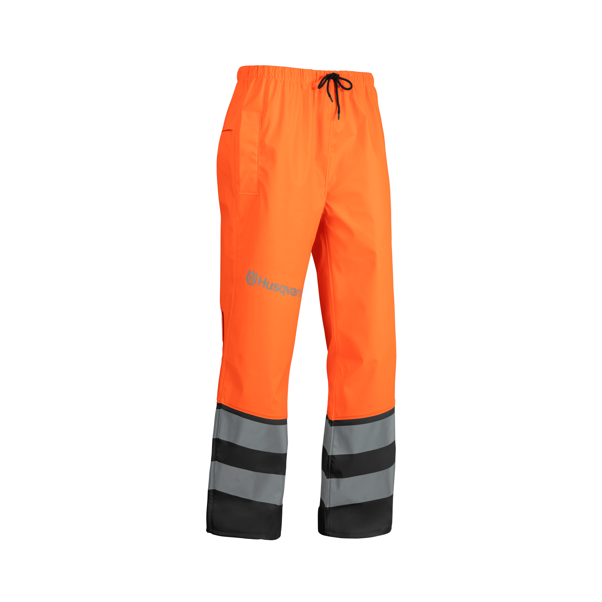 Regnbyxor tillverkade i polyestertrikå med hållbar ensidig PU-beläggning med svetsade sömmar – ett starkt men ändå lätt och ljudlöst material. Dragkedja på sidan av benet gör det enkelt att ta på byxorna. Midjejustering med stretch och dragsko samt ventilationsöppningar på baksidan. Öppningar framtill gör det enkelt att ta på byxorna nedifrån. Godkända enligt EN ISO 20471 klass 2 och EN 343. Storlek XS-XL.